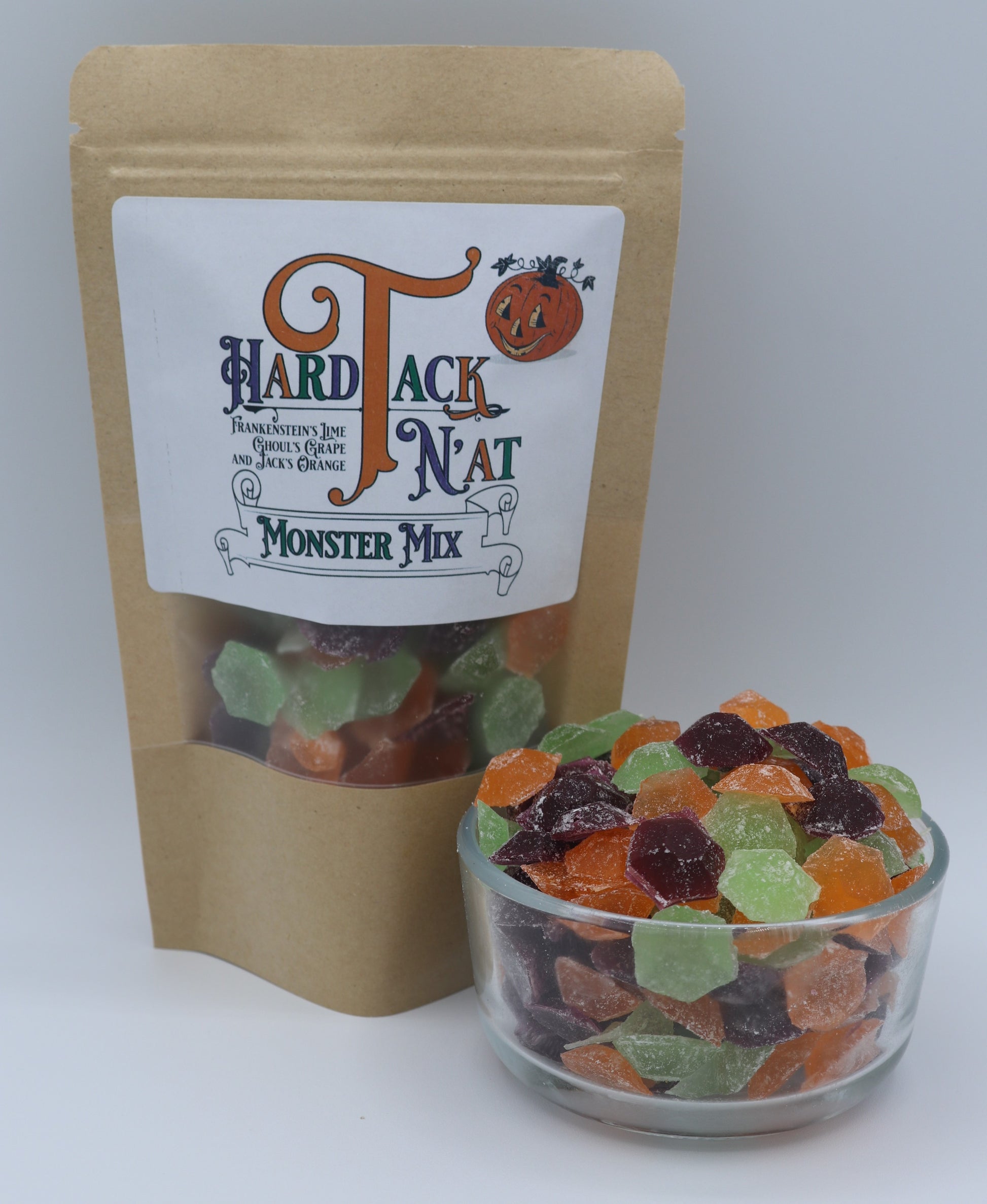 Presenting Monster Mix! This unique candy combines the flavors of FrankenLime, Ghoul's Grape, and Jack's Orange. We have various sizes available - half pound, full pound, and even quarter pound bags - perfect for the Halloween season. Great for any little monster, hero, or character that may visit your home. You can also share them with your coworkers, guaranteed to add some spooky fun to your workplace.
