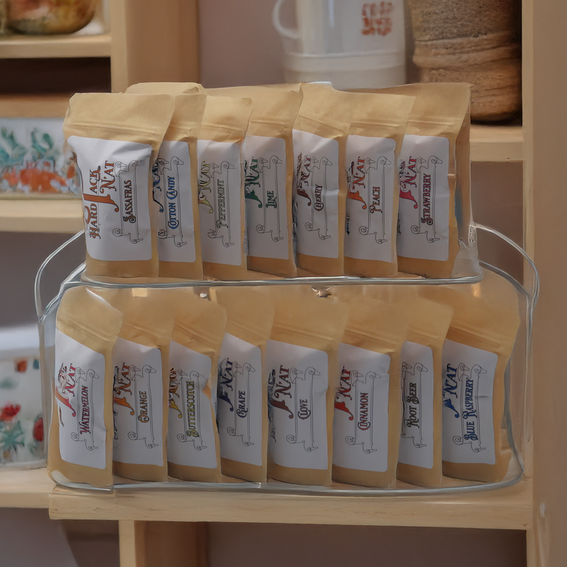 Go big or go home with the Pick 15 N'at Pack! Select any fifteen quarter-pound bags of your favorite hard tack candy flavors to create the ultimate candy experience. Perfect for the candy connoisseur, party host, or generous gift giver, this bundle delivers maximum variety and fun. If you’re looking for something smaller, we also offer the Pick 5 N'at Pack and Pick 10 N'at Pack to suit your candy needs!